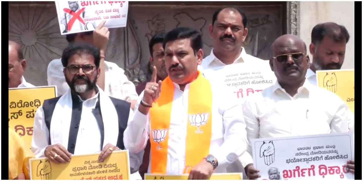 ದೇಶದ ಪ್ರಧಾನಮಂತ್ರಿಗಳಾದ ನರೇಂದ್ರ ಮೋದಿ ಅವರನ್ನು ಉಗ್ರವಾದಿ ಎಂದು ಹೇಳಿದ ಎ.ಐ.ಸಿ.ಸಿ ಅಧ್ಯಕ್ಷ ಮಲ್ಲಿಕಾರ್ಜುನ ಖರ್ಗೆ ಅವರ ಹೇಳಿಕೆಯನ್ನು ಖಂಡಿಸಿ ವಿಧಾನಸೌಧದ ಗಾಂಧಿ ಪ್ರತಿಮೆ ಬಳಿ ಇಂದು ಏರ್ಪಡಿಸಿದ್ದ ಪ್ರತಿಭಟನಾ ಕಾರ್ಯಕ್ರಮದಲ್ಲಿ ಅವರು ಮಾತನಾಡಿದರು. ಖರ್ಗೆಯವರು ಮತ್ತು ಕಾಂಗ್ರೆಸ್ಸಿಗೆ ಪ್ರಧಾನಿಯವರ ಜನಪ್ರಿಯತೆ ಸಹಿಸಿಕೊಳ್ಳಲು ಆಗುತ್ತಿಲ್ಲ ಎಂದು ತಿಳಿಸಿದರು. ವಿಶ್ವದ 25ಕ್ಕೂ ಹೆಚ್ಚು ರಾಷ್ಟ್ರಗಳು ಮೋದಿಜೀ ಅವರಿಗೆ ತಮ್ಮ ದೇಶದ ಅತ್ಯುನ್ನತ ಗೌರವ ನೀಡಿವೆ ಎಂದು ಗಮನ ಸೆಳೆದರು. ಮಲ್ಲಿಕಾರ್ಜುನ ಖರ್ಗೆ ಅವರು ದೇಶದ ಜನರ ಕ್ಷಮೆ ಕೇಳಬೇಕು ಎಂದು ಅವರು ಆಗ್ರಹಿಸಿದರು.