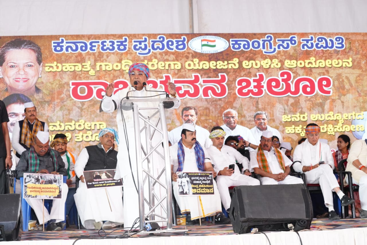 ಅವರು ಇಂದು ಬೆಂಗಳೂರಿನ ಫ್ರೀಡಂ ಪಾರ್ಕ್ ನಲ್ಲಿ ಕೆಪಿಸಿಸಿ ವತಿಯಿಂದ ಆಯೋಜಿಸಿದ್ದ ‘ಮನರೇಗಾ ಬಚಾವ್ ಸಂಗ್ರಾಮ್” ಅಂಗವಾಗಿ ಆಯೋಜಿಸಿದ್ದ ಬೃಹತ್ ಪ್ರತಿಭಟನೆ ಹಾಗೂ ರಾಜ್ ಭವನ ಚಲೋ ಕಾರ್ಯಕ್ರಮದಲ್ಲಿ ಭಾಗವಹಿಸಿ ಮಾತನಾಡಿದರು.